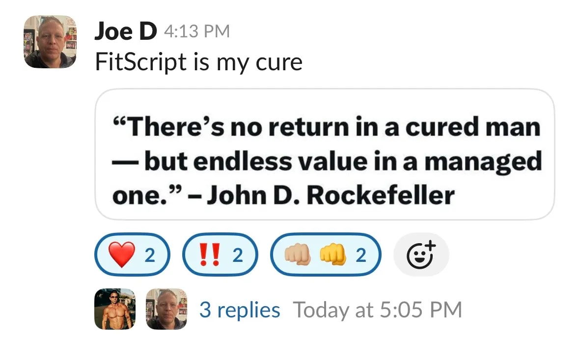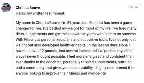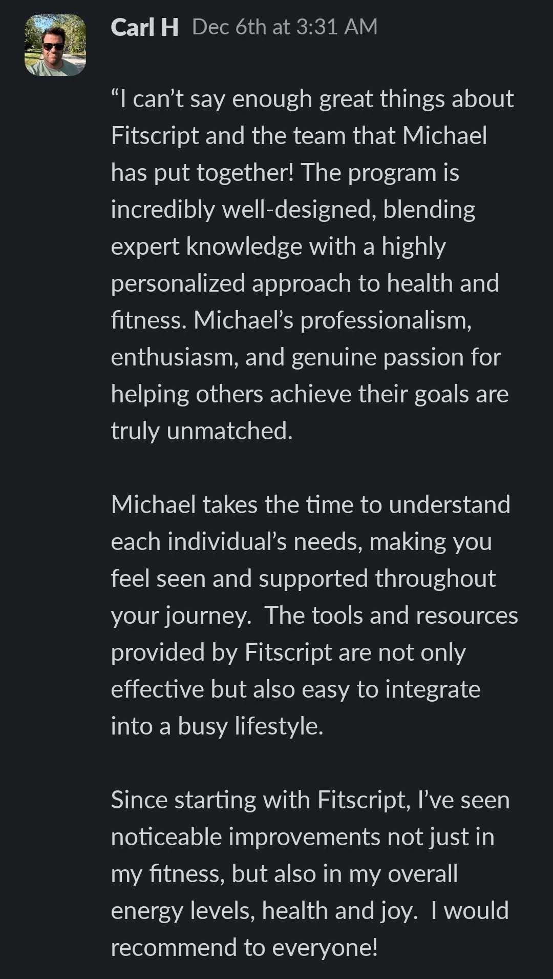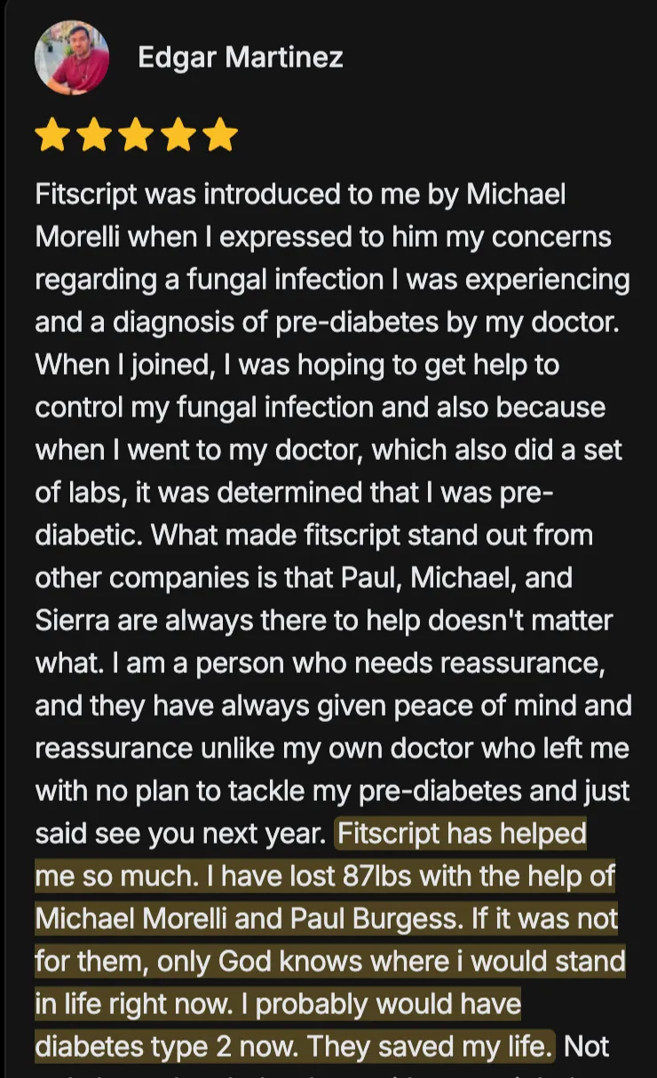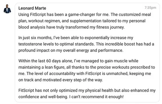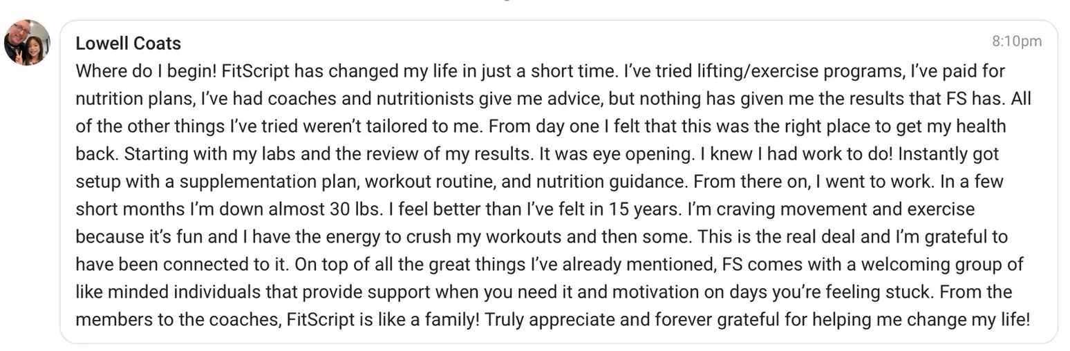 Everyone’s version of success looks different. But here’s what we know: the men who fully commit to the FitScript protocol who show up, follow the plan, and put in the work get life-changing results. Our system is built on data, not guesswork, and backed by a world-class team. We guarantee the roadmap, but you have to drive. Your outcome depends on your commitment.