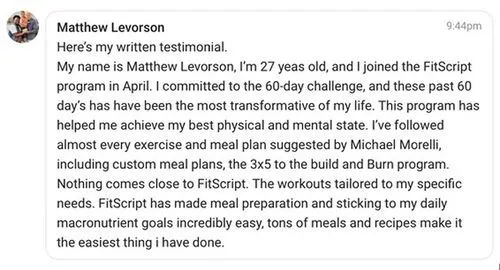 Speak with a FiTScript Health Optimization Advisor to assess your current state of health and goals to see if you’re a good for our program. We don’t accept everyone, we must be 100% confident we can get you results.